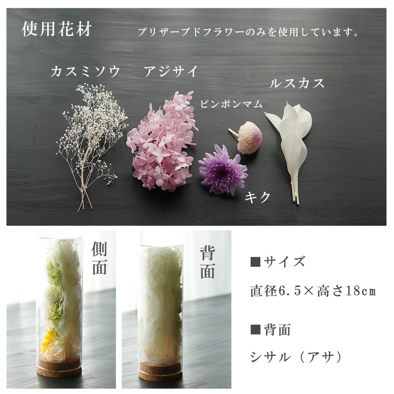 プリザーブドフラワー 仏花【ガラスボトル仏花 まどか】仏壇 お悔み 花 アレンジメント 花 お供え ペット 仏壇用 お花 仏壇 ペット 枯れない 花 一周忌 四十九日 お盆 新盆 初盆 お彼岸 法事 ブリザードフラワー 仏花